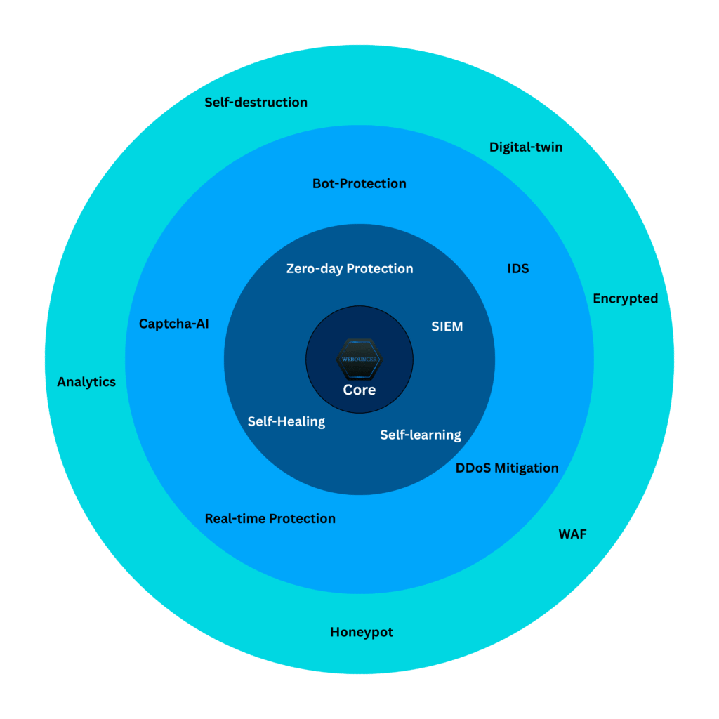 In a world where cyber threats are becoming increasingly complex, it’s time to simplify your security strategy. Why run multiple tools in parallel when one solution covers everything? WEBOUNCER from KraLos GmbH offers comprehensive protection for your web applications, replaces numerous individual solutions and saves considerable costs and resources. With state-of-the-art technology such as a digital twin, real-time protection, CAPTCHA-AI for validation, a honeypot to deceive attackers, precise analysis and protection against zero-day attacks, we set new standards in cybersecurity.
